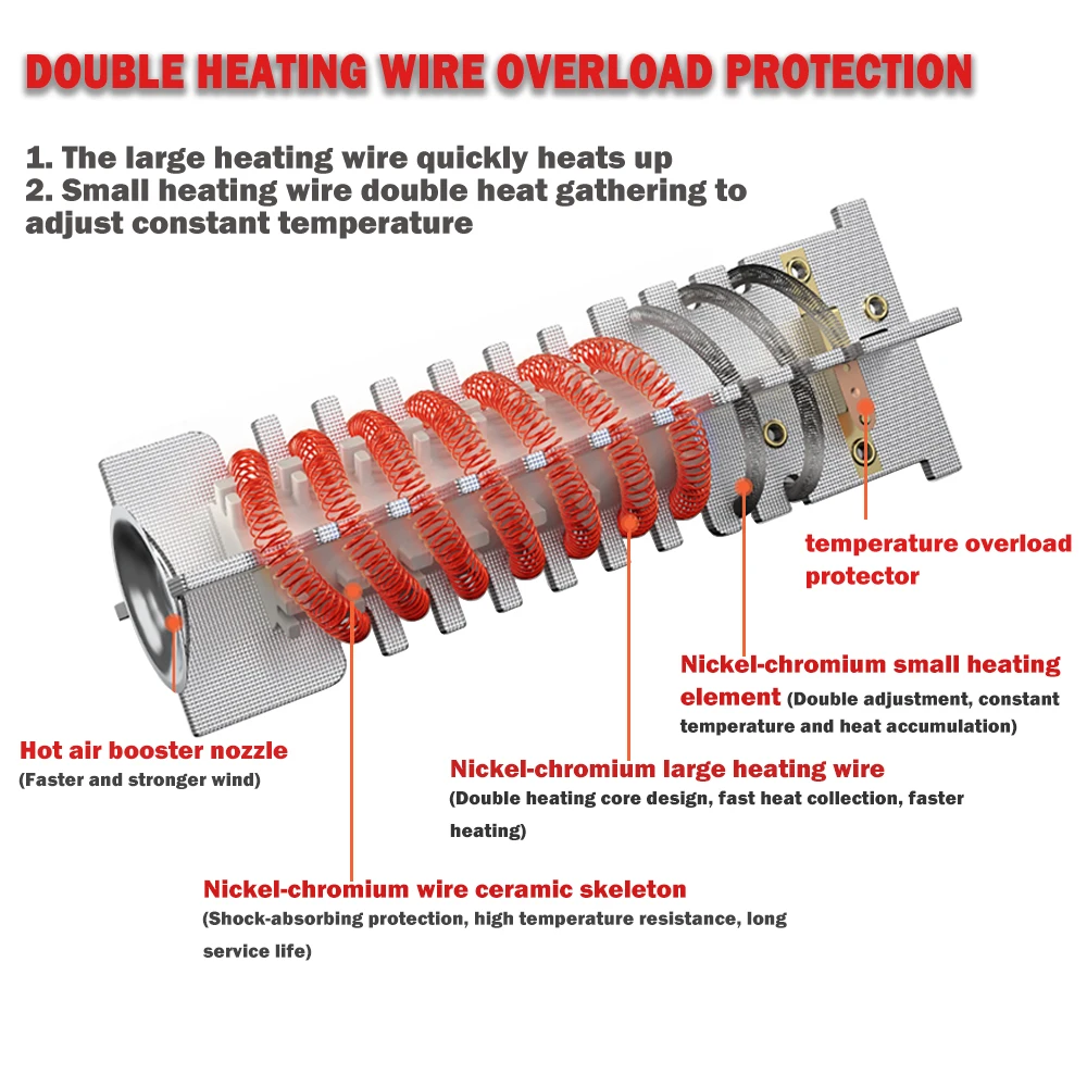 Heating core: Gold mica plate + insulated heating core + jump switch + ceramic framework