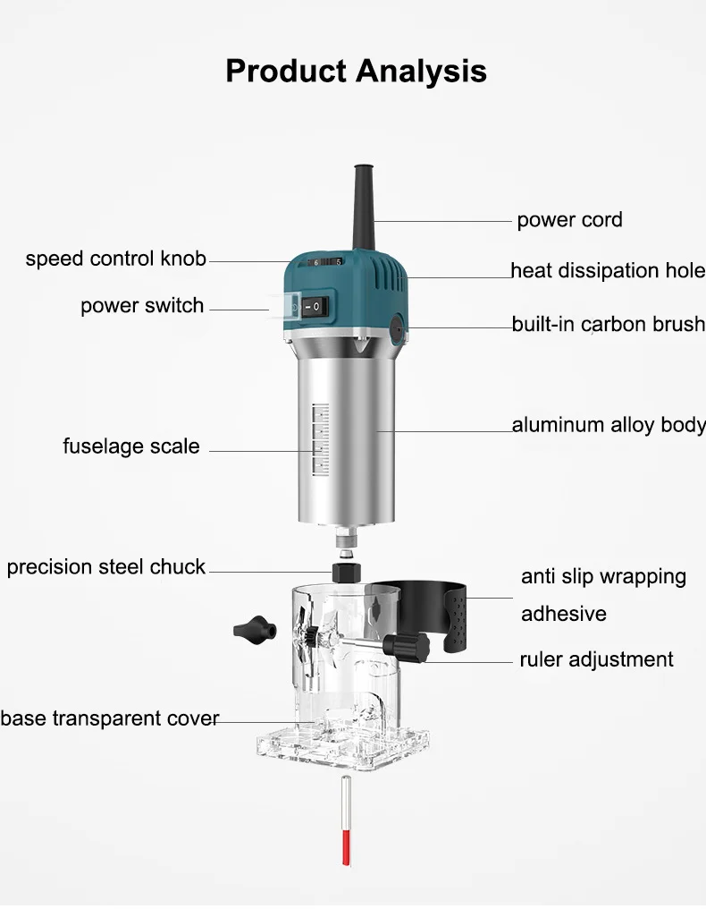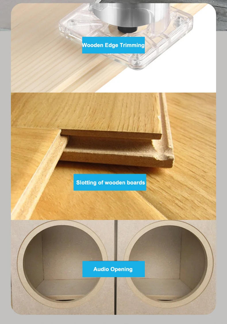 – Suitable for wood cutting, trimming, slotting and making holes,can be used for wooden processing, cabinet processing, handicraft production.